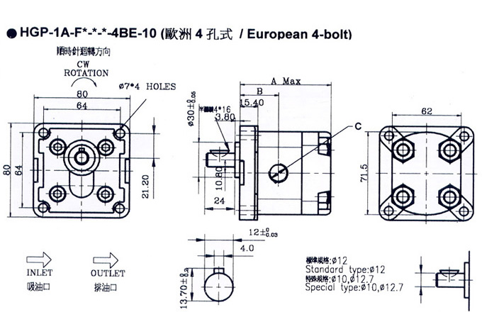 分享產(chǎn)品HGP~1A系列 最高壓力∶250bar(3500psi); 吐出量∶0.8 / rev–7.8 / rev; 法蘭型式∶SAE2孔式,歐洲及DIN4孔式